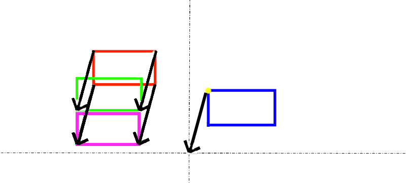 This isn’t the only way to calculate the Minkowski difference, but I think it’s the easiest, and it’s fast enough that you don’t really need another method. If your rectangles are stored in origin + extents format, you can easily convert them to four-corners and then do this calculation – slightly inefficient, but on modern hardware not even a second thought. Drop me a message on Twitter if you really need to know how to use origin + extents without converting!